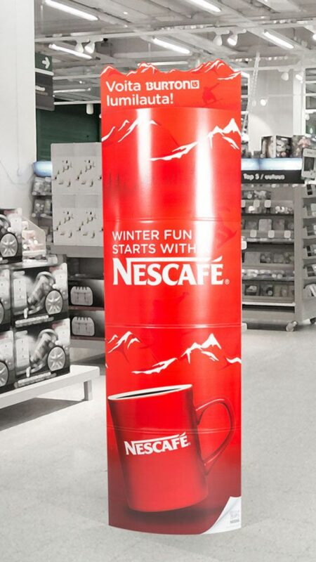 La gráfica incorporó los colores y valores de la marca, logrando un expositor llamativo, funcional y totalmente reciclable.