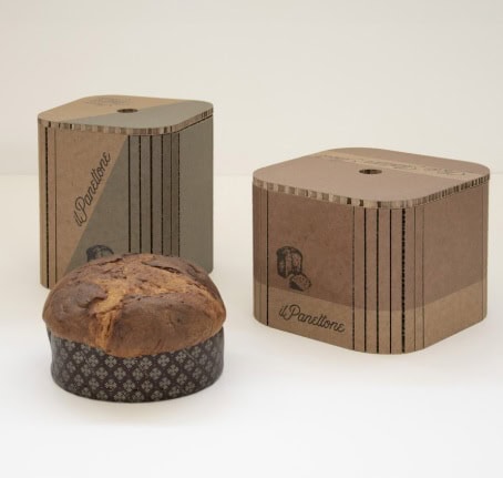 Caja de regalo para panetones u otros productos de alimentación, fácil montaje y personalizable con tu logo y imagenes, con diseño redondeado agradable.