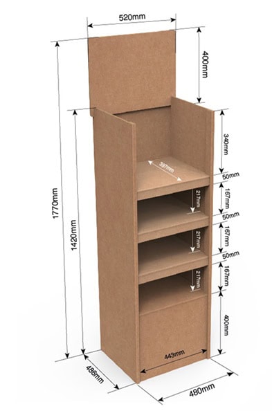 Expositor o estructura de cartón personalizado con baldas resistente y facil de montar