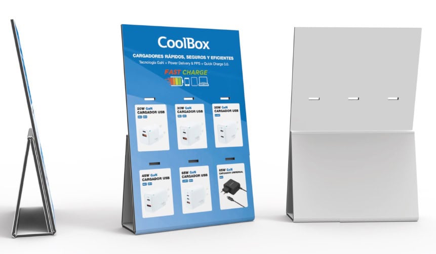 Expositor cartón sobremesa o mostrador con ganchos