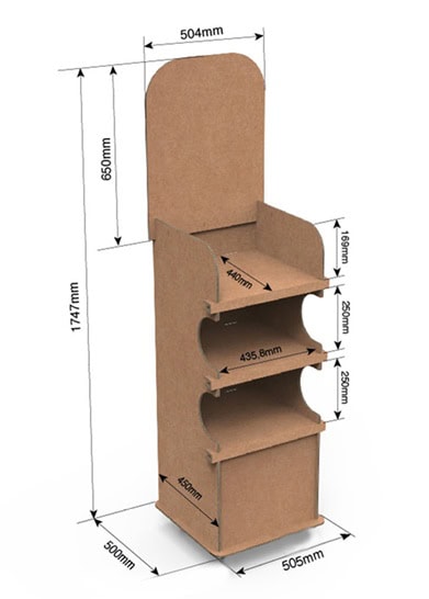 expositor o estructura de carton personalizado modelo 16, adaptable en medidas sin coste de troquel ideal para tiendas y supermercado