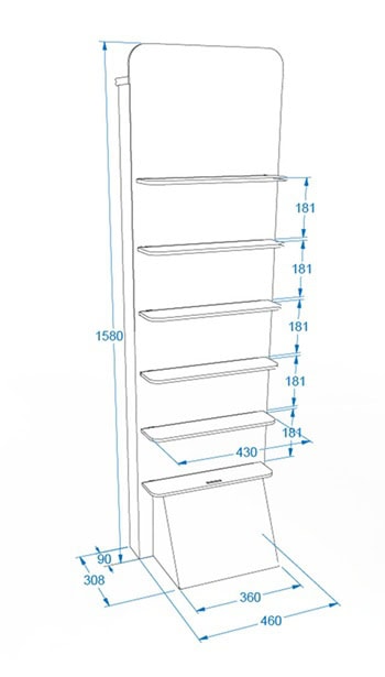 Expositor o estructura de carton personalizado modelo 22, adaptable en medidas sin coste de troquel, fácil montaje, ideal para tiendas y supermercados.