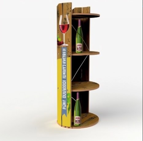 Expositor para botellas de vino y bebidas redondo en cartón, fácil montaje,