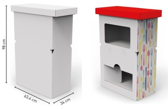 Mesa Portatil cartón para Publicidad. . Resistente y de fácil montaje, perfecto para todo tipo de productos ideal para degustación en supermercados.