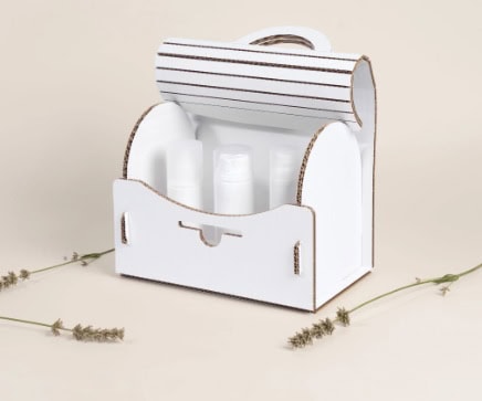 packaging bolso caja expositora cartón regalo para cremas, redondeado, fácil montaje ideal para presentar cremas en un estuche elegante y bonito